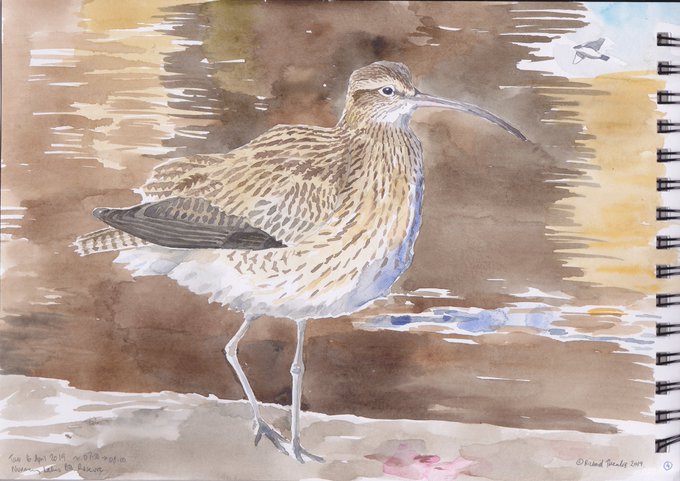 Waders on Gugh Bar, Isles of Scilly, Oct 2015, painted at the time. #WorldCurlewDay
