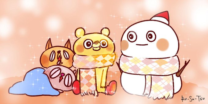 るんるん スノーマンで つー (るーは昨日、ゆきだるまが遊びにきた夢をみたそうです。) #画像 #イラスト るーすーつー