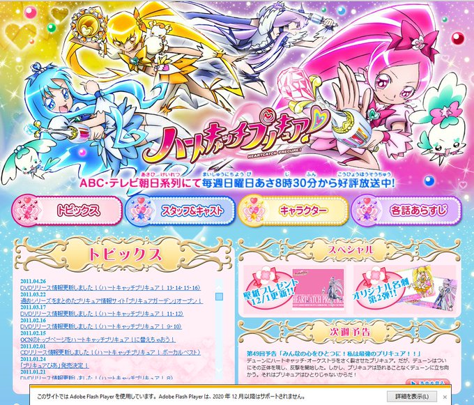 ドキドキ以降はFlash使わなくなったのか問題なく表示されてるんで、5GOGOからスマイルまでのサイトの修正しなきゃいけないんだけど…… やるのかなあw