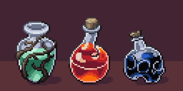 Here's a few more potions I made via /r/PixelArt https://t.co/Y3mke8qABc #pixelart