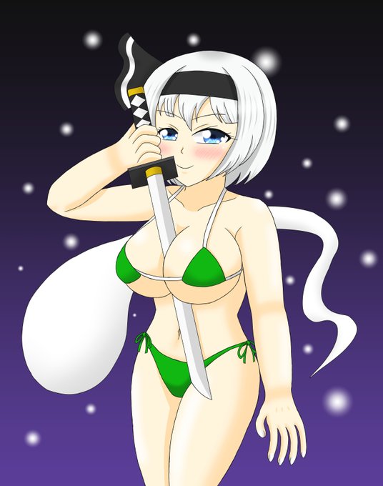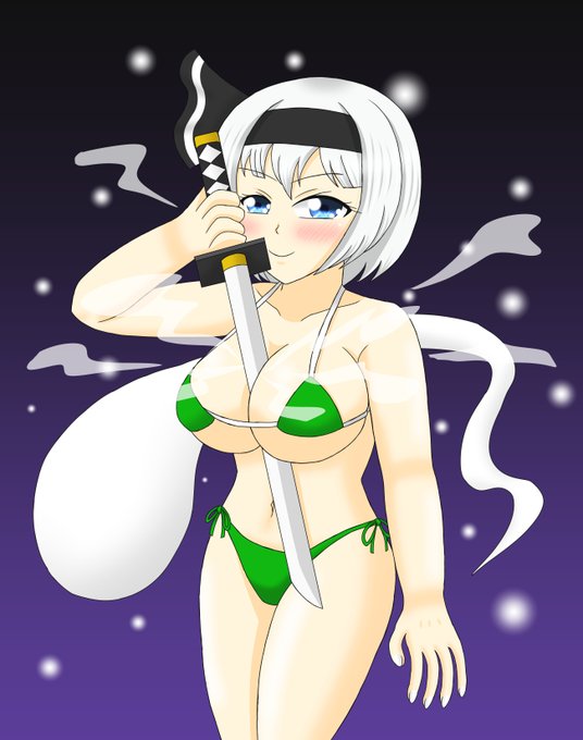 とある将軍みたいに谷間に剣を挟む妖夢ちゃん。