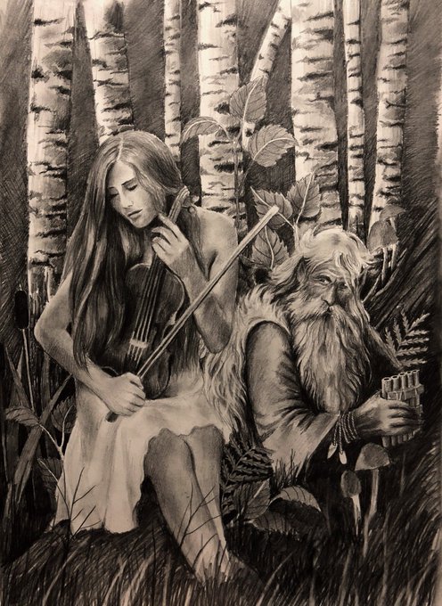 #рисунок #арт #draw #graphic #pencildrawing #pencilart #blackandwhite #yuliyakravets #artwork #artistsoninstagram #artragneidr #artgallery #графика #artforsale #artfollowers #леший #лес #ведьма #березки #мистика #луна #witch #moon #forest #magic #скрипка #музыка