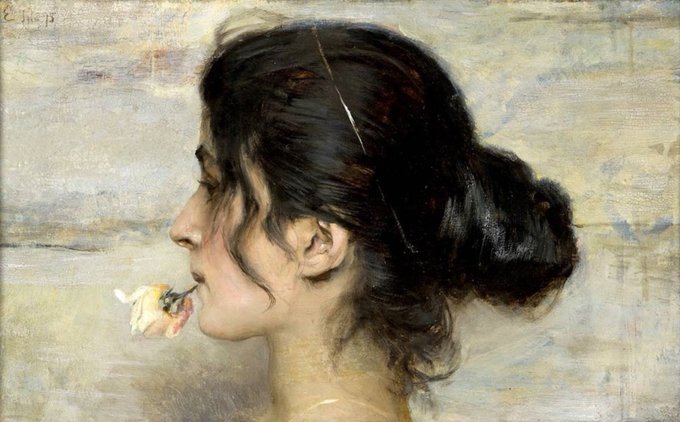 Ettore Tito, Con la rosa tra le labbra, 1895, Collezione privata.