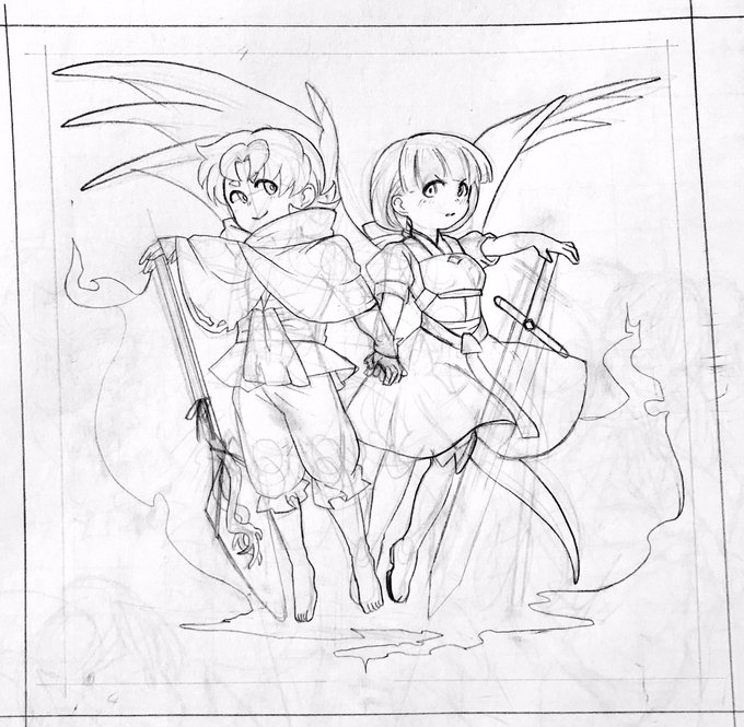 旧作ボスキャラたち描いてみた #ラクガキ #東方project #岡崎夢美 #神綺 #sariel