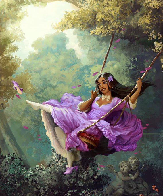 I recently went through my old art folders and found a study that I did back in 2018 of the famous "The Swing" painting by Jean-Honoré Fragonard. I immediatley pictured #isabelamadrigal from #Encanto on the swing, so I decided to edit that old piece ^^
