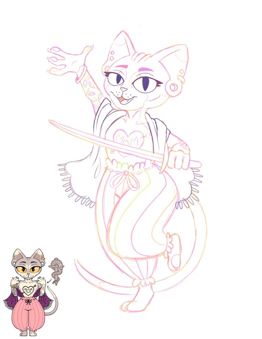 Callista is a sword swallower. I made this decision before discovering that sword swallowing is….really hard to draw lol
