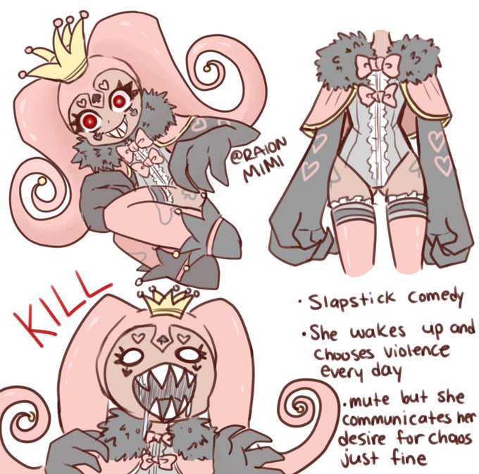 She is a chaotic being who enjoys violence, and the chance of getting hit by falling anvils, smacked by a bat, stepping on rakes increases when she’s around