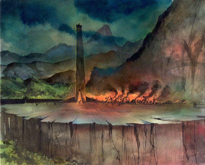 Artwork from "Fire & Ice" by @GurneyJourney and Thomas Kinkade for #frazettafriday