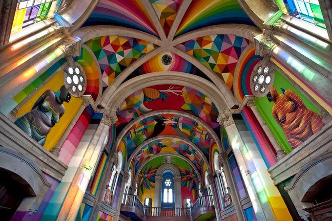 Okuda San Miguel turns the 100-year-old church into kaleidoscopic skate Park.