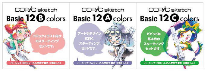 今夏新発売の「コピックスケッチベーシックセット」シリーズの販促イラストを担当しました。