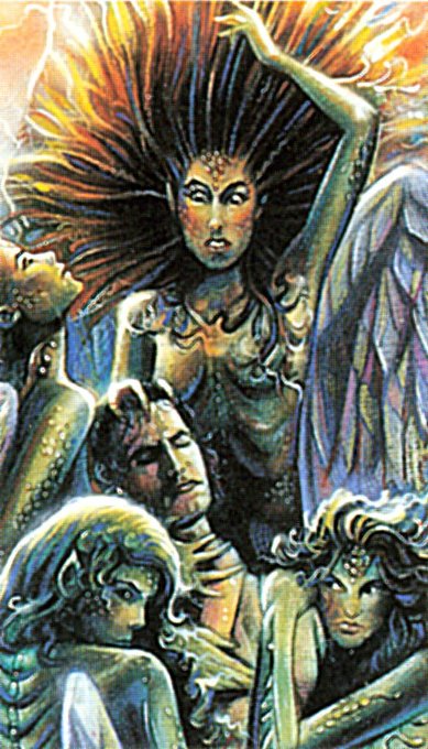 Sirens. From a cigarette card collection called "Creatures of Legend". Art by Mark Longworth. #cigarettecard #MarkLongworth #siren #myth #legend