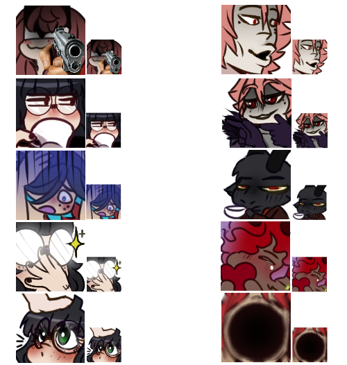 So here's some cheap as Emote commissions! Please DM to discuss! (and to ask for animated examples if you want them)