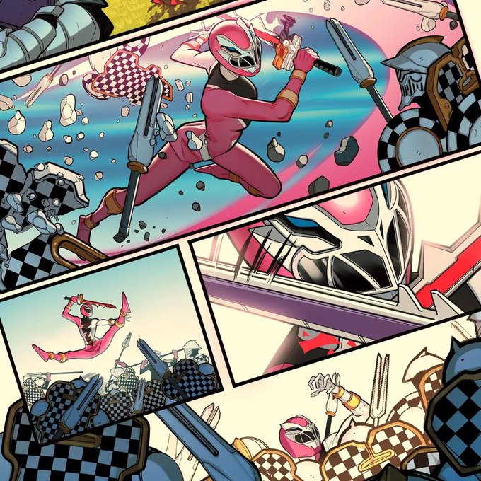 Ilustraciones de @VirgilioDAmbros con colores de @Valentinataddi para la revista oficial de #PowerRangers #DinoFury