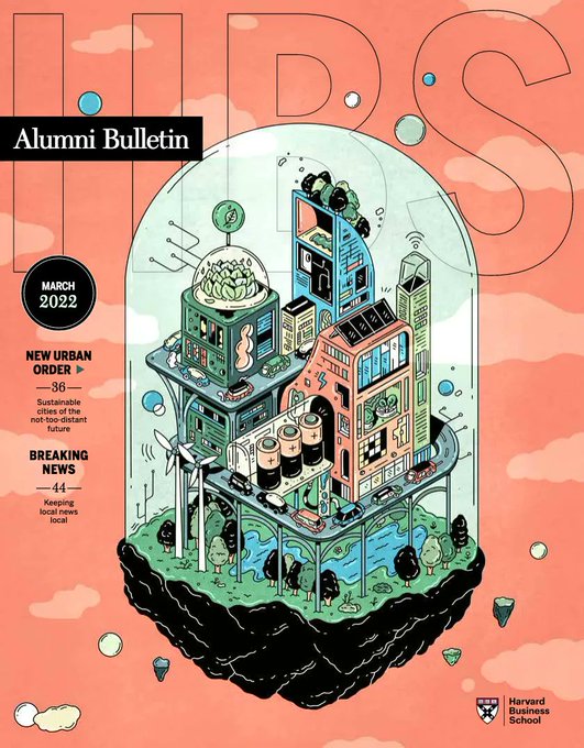 Kathleen Fu @Urbsvidi was commissioned to create a cover and several interior illustrations for Harvard Business School Alumni Bulletin.
