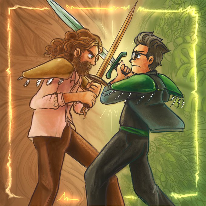 Given the chance to draw a woody rhett vs leafy link theme, i'll always take it #rhetttandlink #gmm #luckyshoulderpads #swordfight