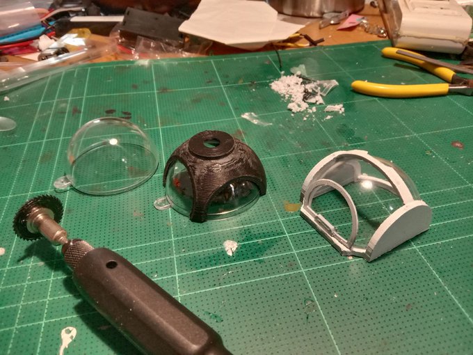 How to precisely cut a half sphere acrylic? You 3D print a jig, score the half ball and cut it accordingly. The final product is relatively repeatable so I can make more of the same if needed.