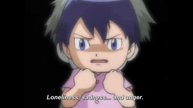 Ken's contact with darkness dates back to much earlier in his life, when he was still a child, tempted by darkness through his anger, loneliness and sadness until he became the Digimon Kaiser.