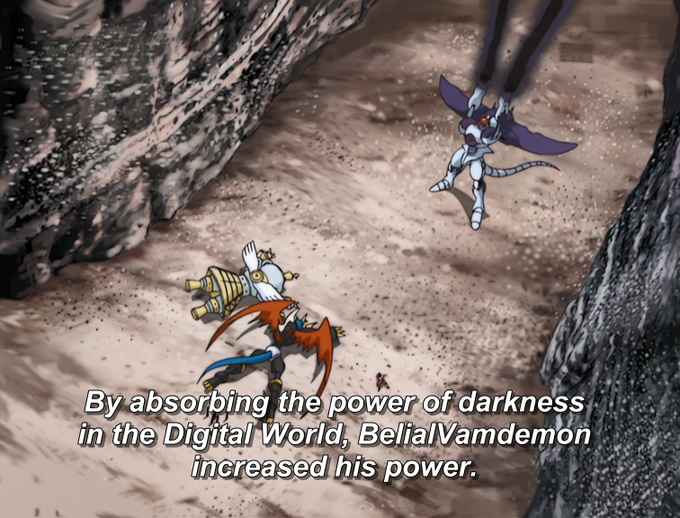 Another one of this demonstration is the power of darkness making Digimon Dark-Evolve. Like Greymon/Agumon who evolved into the uncontrolled Skull Greymon and then MetalGreymon, who for being "corrupted by darkness" became a Virus-type Digimon.