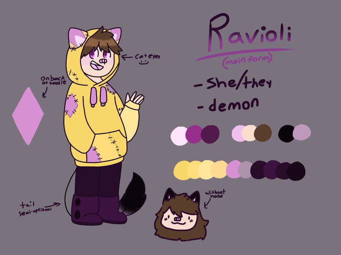 so i was looking at some of my old oc refs and if you put my old sona design next to my new one it looks like a pokemon evolution line and i find that very funny