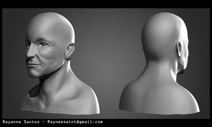 My bust go at sculpting the likeness of Sir Patrick Stewart for my #GameArt class.
