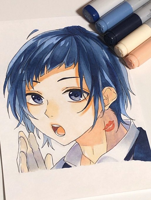 絵載せれないから前の過去絵を 『ハイ☆スピード!』 中学生 松岡凛 #模写 #コピック #松岡凛 #ハイスピ