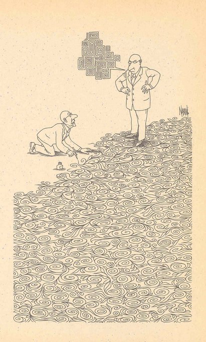 ROGELIO NARANJO: Mexican. Prodigious cartoonist. His single image rendering extravaganzas capture character & theme.
