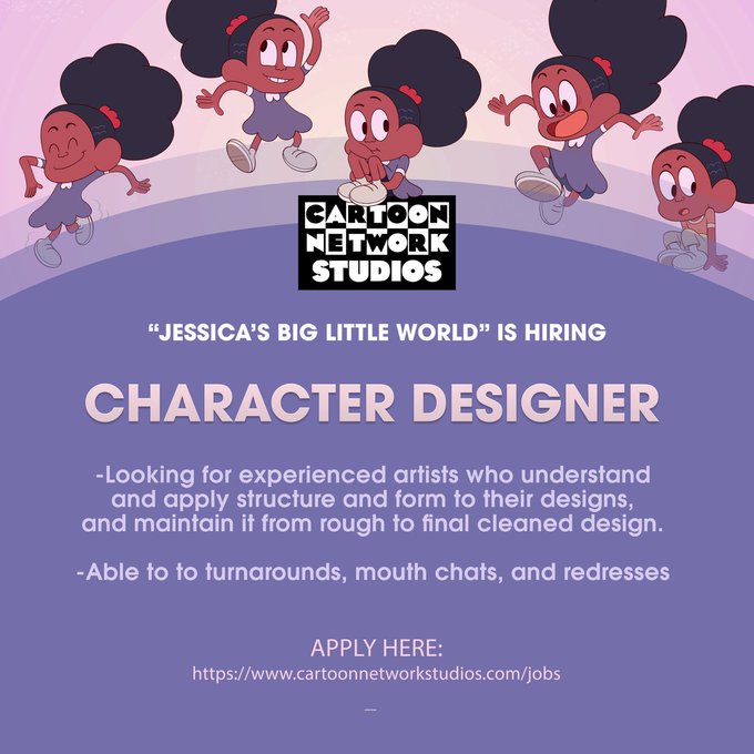 ⭐️ Cartoon Network Studios seeks a CHARACTER DESIGNER for JESSICA'S BIG LITTLE WORLD! ⭐️