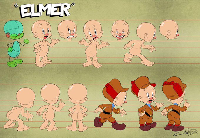 Model Sheets of bugs bunny and Elmer Fudd / used as reference for the short film " Dynamite dance ", made by Jim Soper for the new series " Looney Tunes cartoons ".