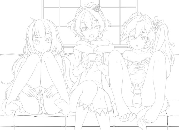 Unicorn, Javelin & Laffey #アズールレーン #ラフィー(アズールレーン) #ユニコーン(アズールレーン) #ジャベリン(アズールレーン) #パンチラ #足裏 #靴下 https://t.co/g79pcNHunr