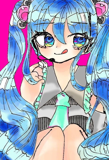 #初音ミク たぶん去年の11月くらいに描いてた線画、塗らずにスマホに入ってたから今更塗った、、(1億年ぶりにスマホのアイビスいじった………)