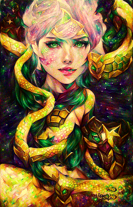 @LuckyPigNFTs knows what a tough time I had choosing from this incredible collection created by @mrflosunday! Meet "𝓒𝓮𝓵𝓮𝓼𝓽𝓲𝓪𝓵 𝓖𝓸𝓻𝓰𝓸𝓷." 🐍 https://t.co/mwQ9AyDa2d