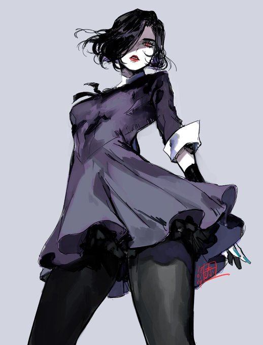 레아 반신입니다! 전부터 회색감과 빛 없는 캐릭터들 인상이 멋졌던 키리약 님께 커미션을 넣고 싶었어요😍💜 저 늘씬한 몸이 두근두근...!