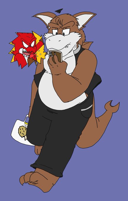 @FreddyDaGryphon Here's some pics of your character rubble, ( non colored & colored ) getting annoyed by sprocket because of being late for not bringing chicken at home from a restaurant.
