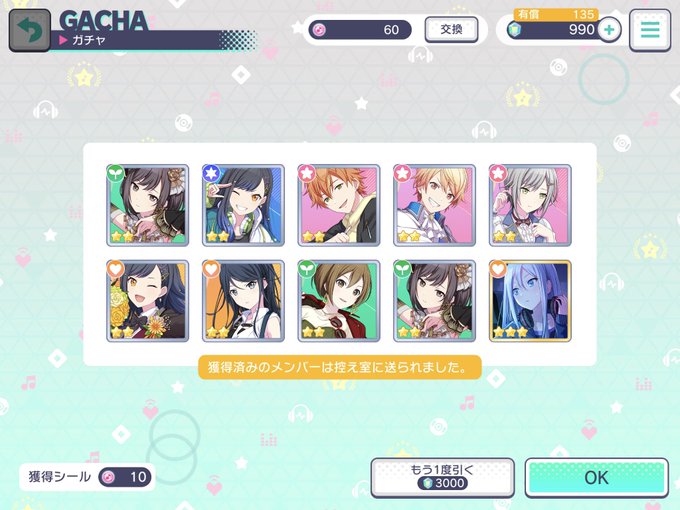 1連ガチャの方が出やすい…のですかね?もしそうでしたら、私は今まで無駄な事を…( ´;Д;`)