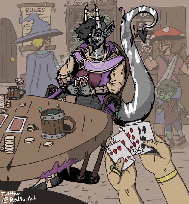 Just attacked @avitherum on #Artfight2022, drew his character Caligo cheating some rich bastard out of some money in a shady bar! It was both a lot of fun and very tedious to draw, enjoy!