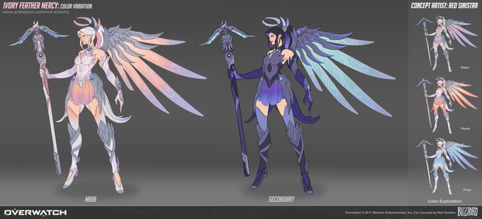 Ok, Ivory Feather Skin for #Mercy is complete ✨🌸 Added all color variations I made for her :3