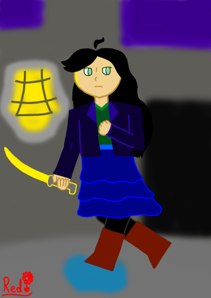 I tried doing reflections of her boot in the puddle, but it just looked like blood. Not to worry, our hero hasn't been harmed...not yet.