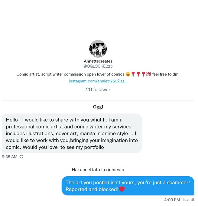 SCAM WARNING: this woman(?) goes in the direct pretend to be an artist who wants to collaborate with you, but all the art on her pages is reposted/stolen. Keep an eye on it!🙏😤