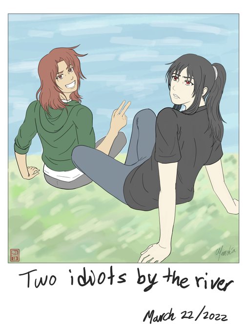 "Two idiots by the river"