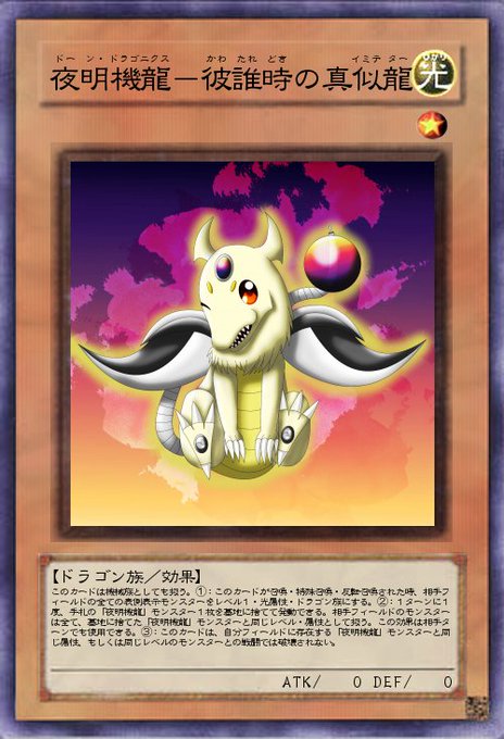 夜明機龍は基本的に龍魔眼の源神(←の画像)しか人の言葉は有さないんだけど、GX見てると曙の飛馬龍(→の画像)がヨハンのサファイアペガサスみたいな爽やか好青年風に話しかけてきてくれるんじゃないかと錯覚しだした今日この頃