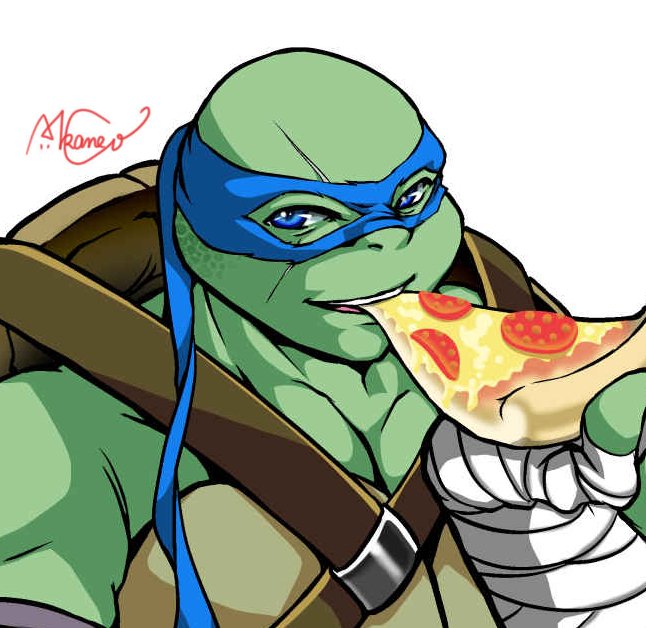【亀】1日1枚お絵かき26日目(累計126日目)TMNT新実写亀ミケランジェロ。食べ物と亀が続いたのでミケちゃんもソレで。汚い食べ方させたかったけど、あんまり汚くならんかった。