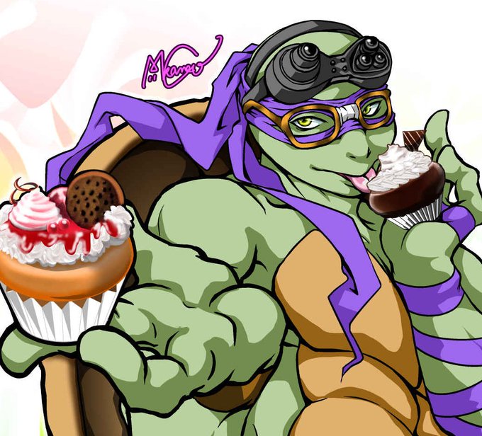 【亀】CG亀って肌の色とかほとんど兄弟で変わらないけど、自分で描く分には少し区別つけたいなぁと思うので、少ーしだけ肌に茶を混ぜてドナ色っぽくしたけど、よく考えたら新実写も同じようなことやってもいいなぁ。CGドンと新実写ドン。色々試行錯誤中。