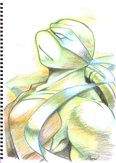 【亀】1日1枚お絵かき87日目(累計187日目)。TMNT新亀レオナルド。レオナルドはとにかくカッコいいんだ。身だしなみを整える姿だって絶対カッコいいんだ。