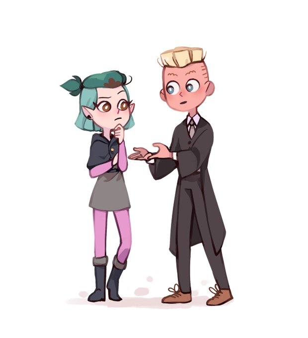 Been brainstorming on letting my Harriet Jinjur characters interact with the Owl House, and I couldn't help thinking Aloysius and Amity would get along the most.