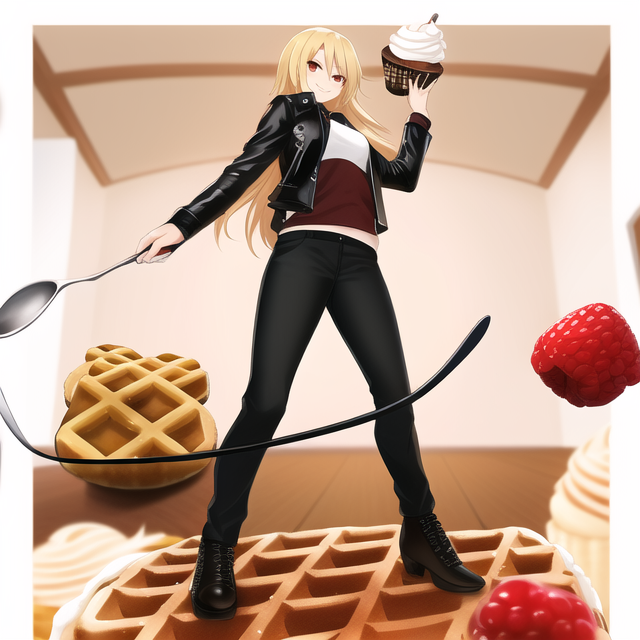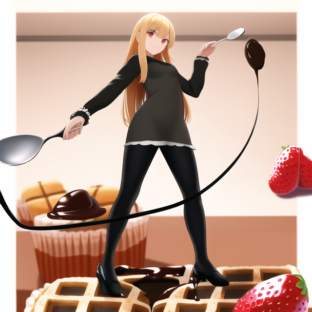 @Anu_snmy 「何か足りないなぁ」とと思ってお姉さんを弄っていたら、お菓子が生えてきたり、いつの間にかスプーンから垂れるチョコを鞭にしていました🍫🍰😆