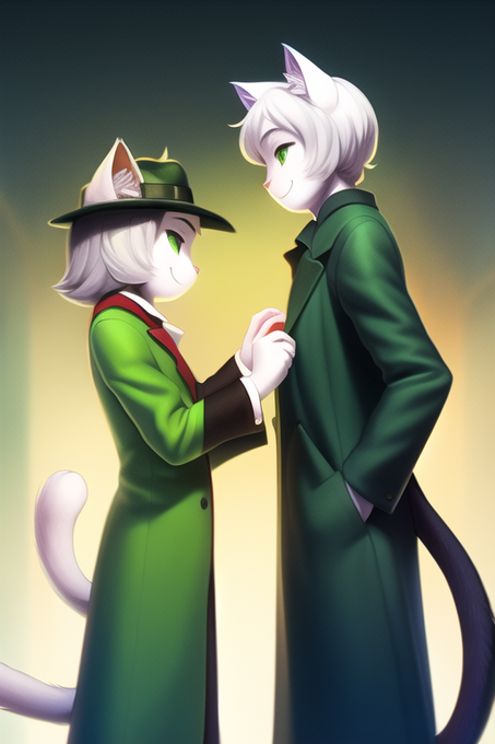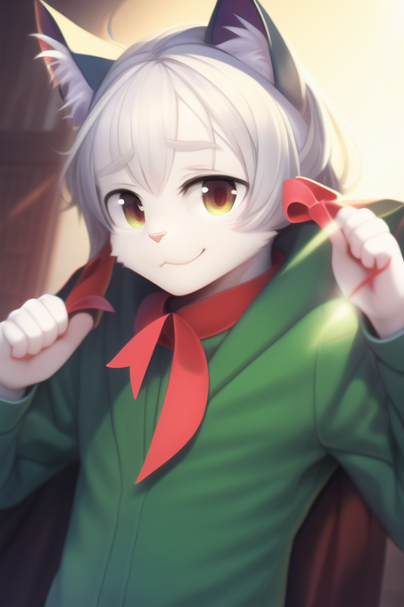 「male, blue eyes, silver hair, medium hair, light smile, {{green clothes}}」