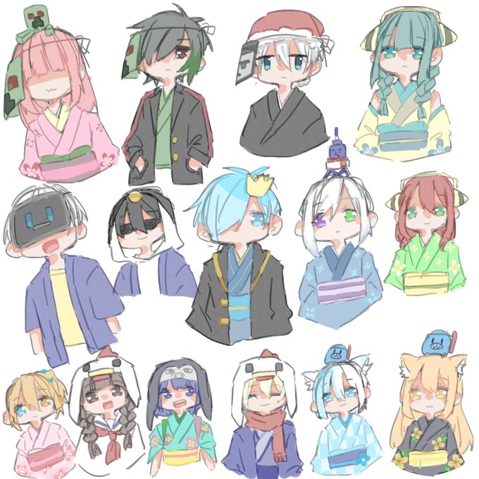 #クリーパーの爆発は芸術 お正月っぽい絵をリクエストしたらとしばさんが描いてくれた〜!!! モチがのびにのびてるし口の横に食べかすついてるの可愛い…!