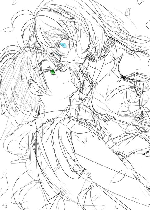 周年絵と直近イベント絵ラフチラ見せ👀 ちなみに周年絵ユアンくん気に入らなすぎて1から結局描き直ししてる😂