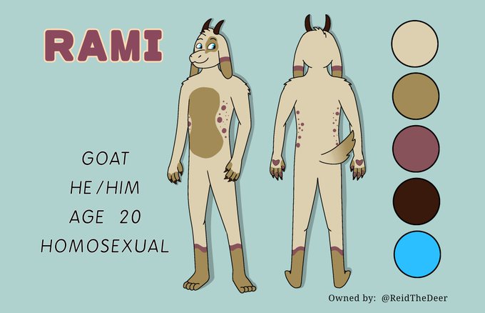 Updated ref sheet for my Goat OC, Rami. He's very sweet, so feel free to say hi 😁