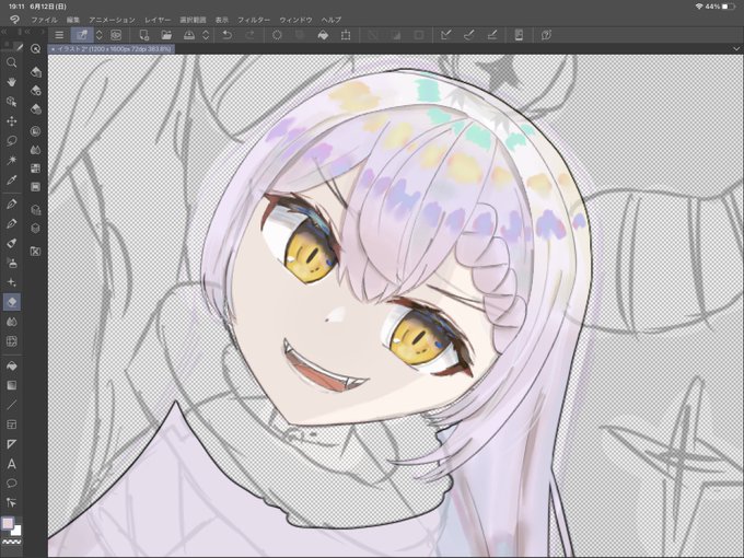色塗ったラフまでできた! あと調整して線画、塗り、背景で完成✨